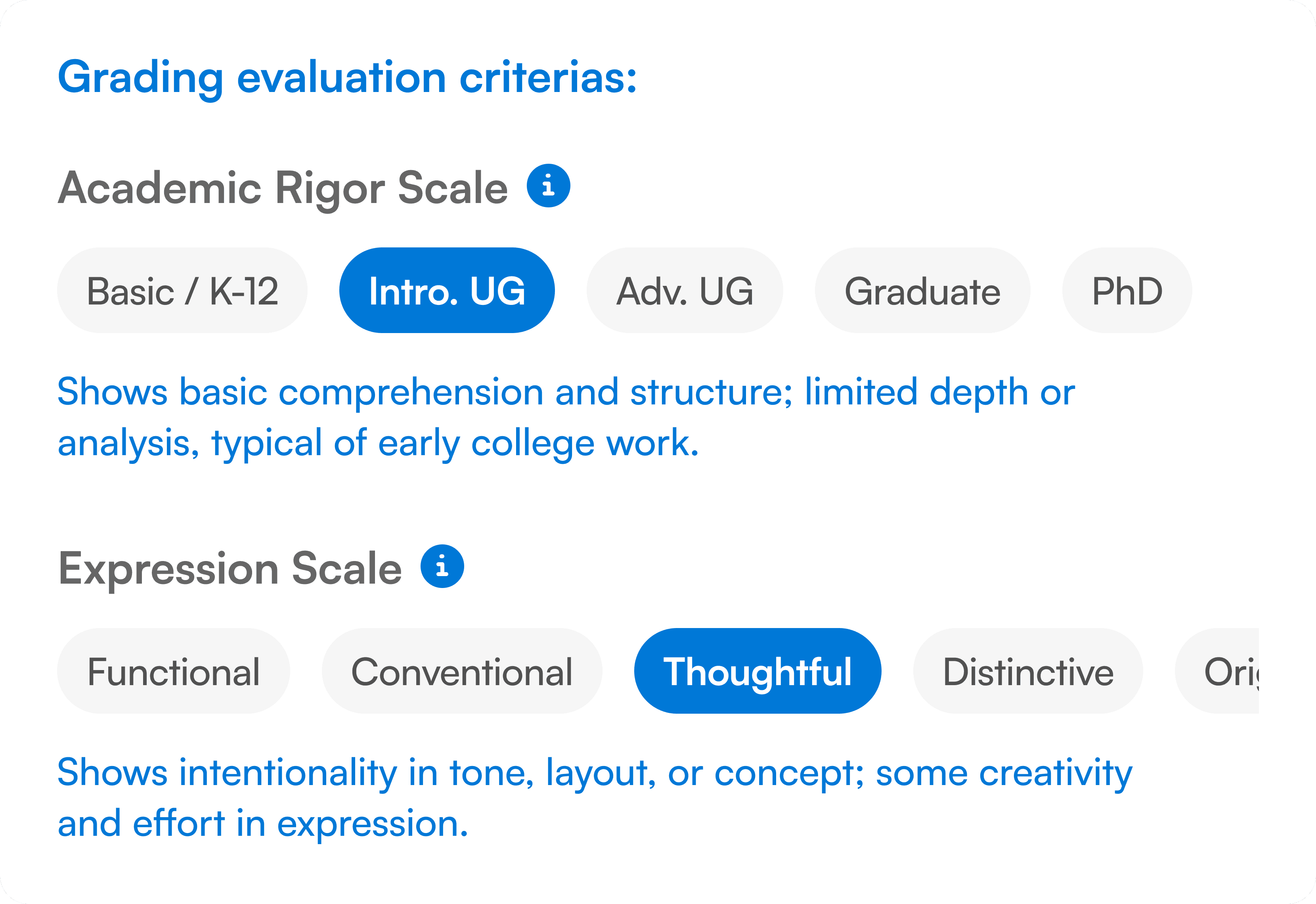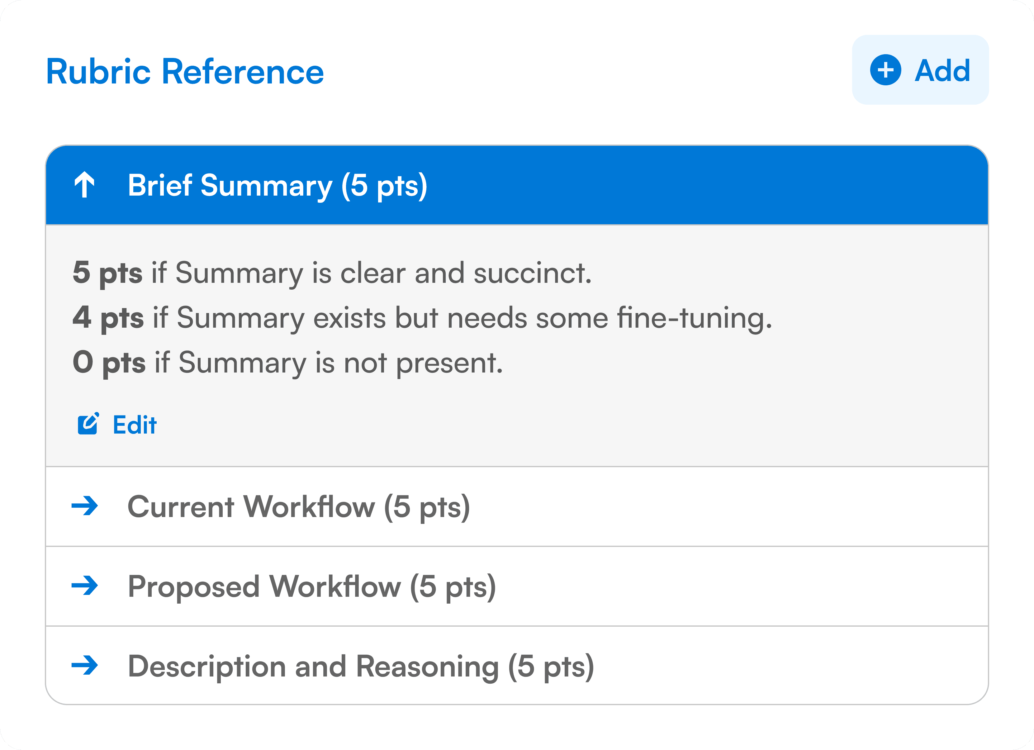 Easily review and refine rubrics.