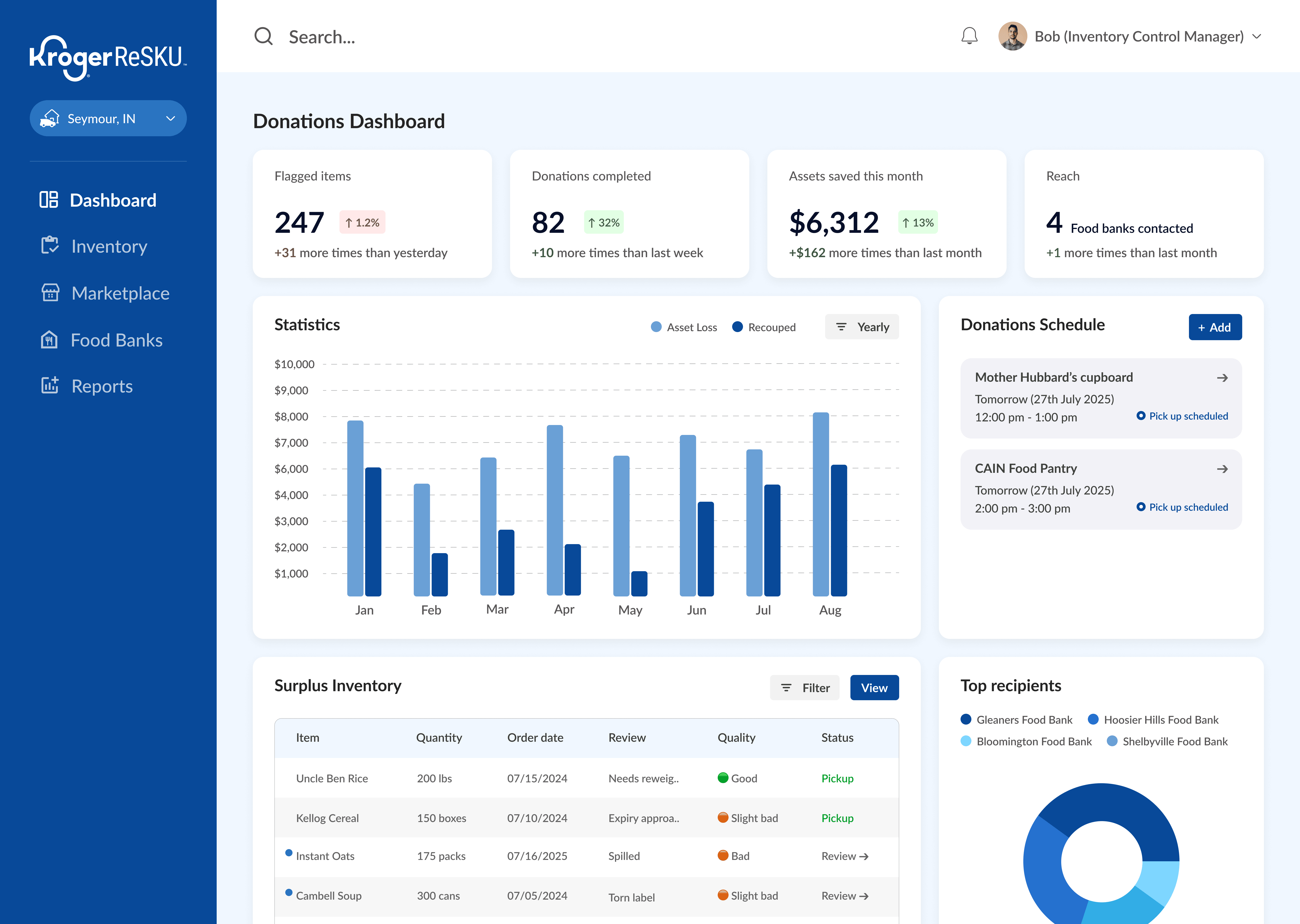 Each unsellable category—from produce to dairy—has unique handling needs. We focused on low-friction products (Ambient goods) to ease Kroger’s first implementation.
