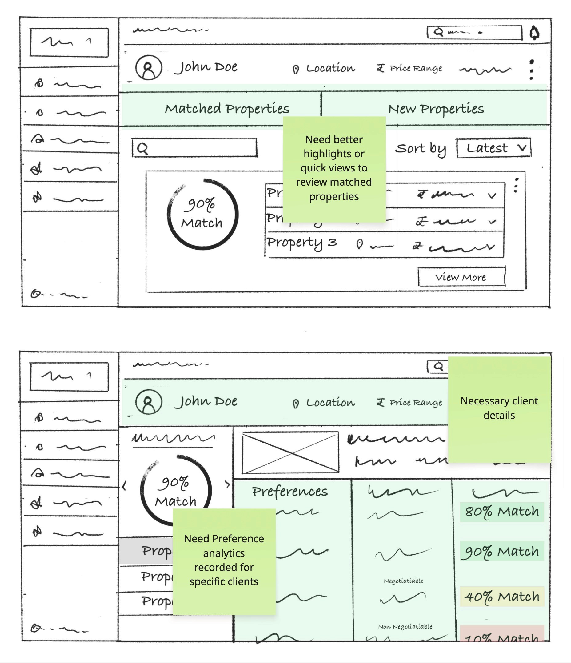 Early research surfaced conflicting insights from brokers and property seekers. By triangulating patterns across stakeholders, I learned to cut through ambiguity and define a clear design direction around systemic pain points.