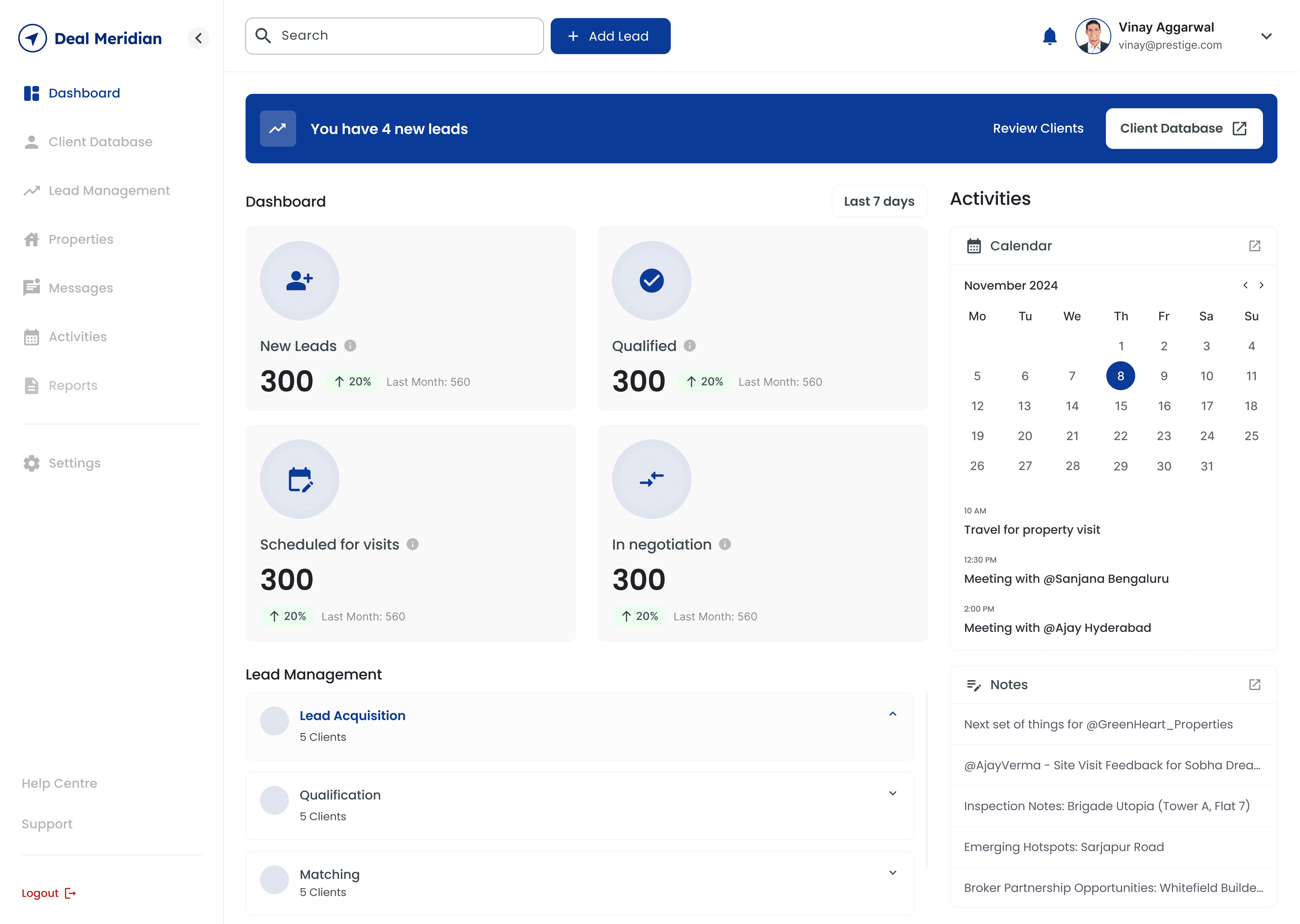 Brokers relied on scattered tools that made it hard to track client progress. Our dashboard consolidated lead management cycle insights and tasks