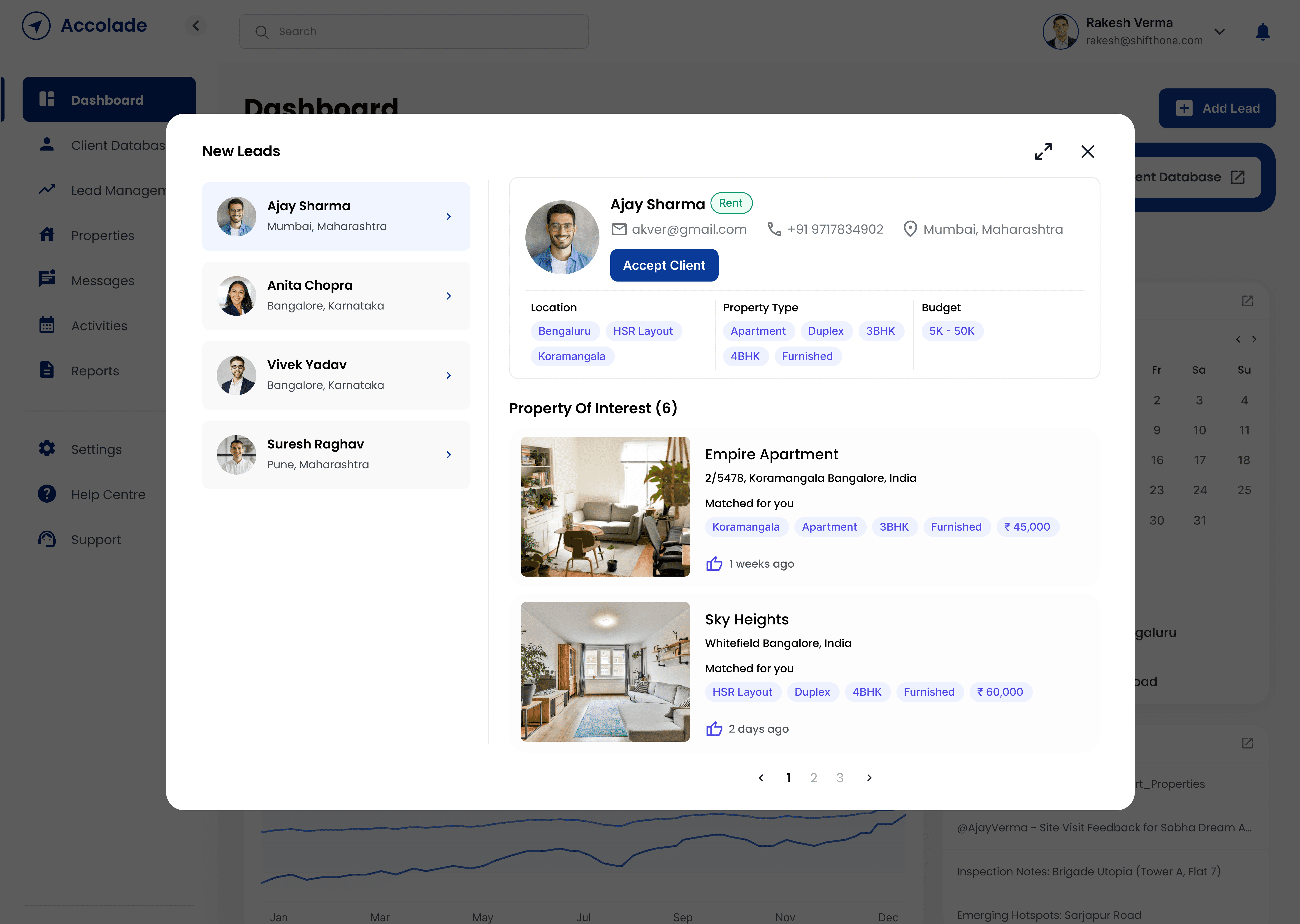 Accolade sponsored the project to bring their prop-tech tool into India real estate market, where brokers face inefficiencies from scattered workflows, disorganized client management, and slow lead qualification.